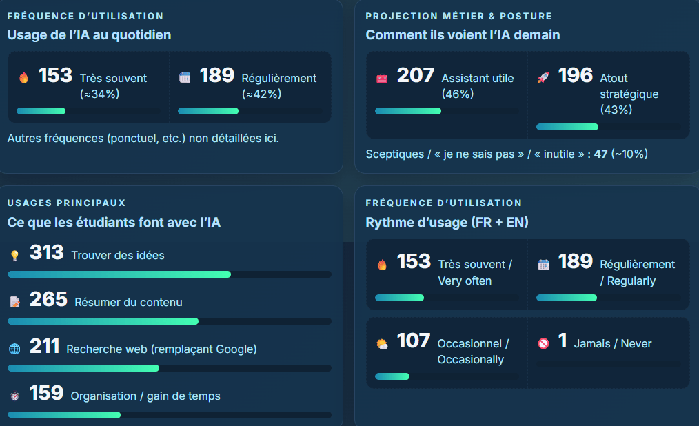 Ces résultats, à croiser ensuite avec ceux de la cohorte PGE au début 2026, devront s’ancrer tout au long de leur scolarité dans leur expérience d’apprentissage, guidée par leurs professeurs, pour leur permettre de bien remettre l’IAg à sa place : un assistant utile, mais à contrôler en permanence !